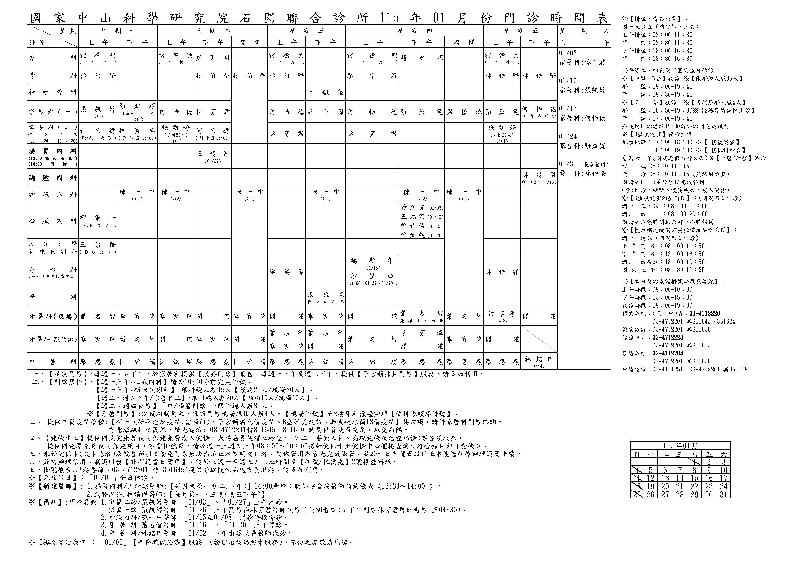 5.【中 醫 科:林銘堉醫師】「01/02」下午由廖思堯醫師代診。