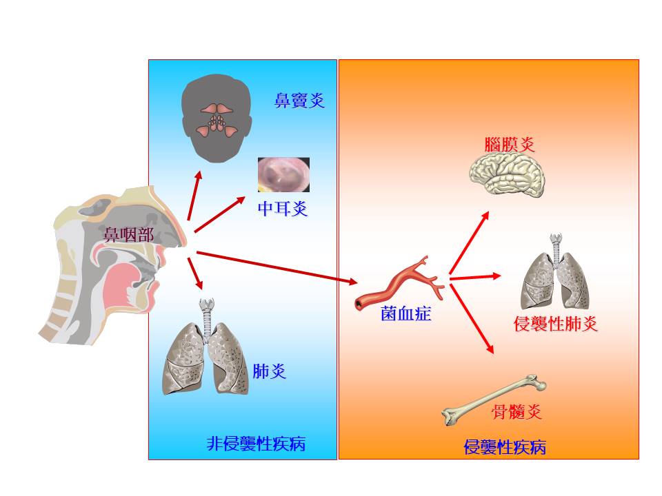 肺炎鏈球菌會引起多種侵襲性疾病主要包括敗血症、肺炎、腦膜炎等