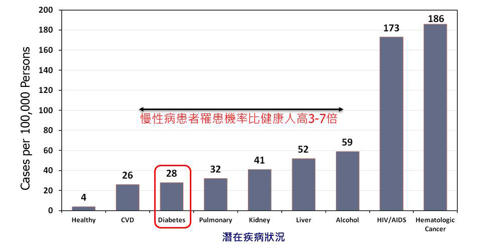 糖尿病、心臟病、癌症等患者都是罹患肺炎鏈球菌疾病高危險群