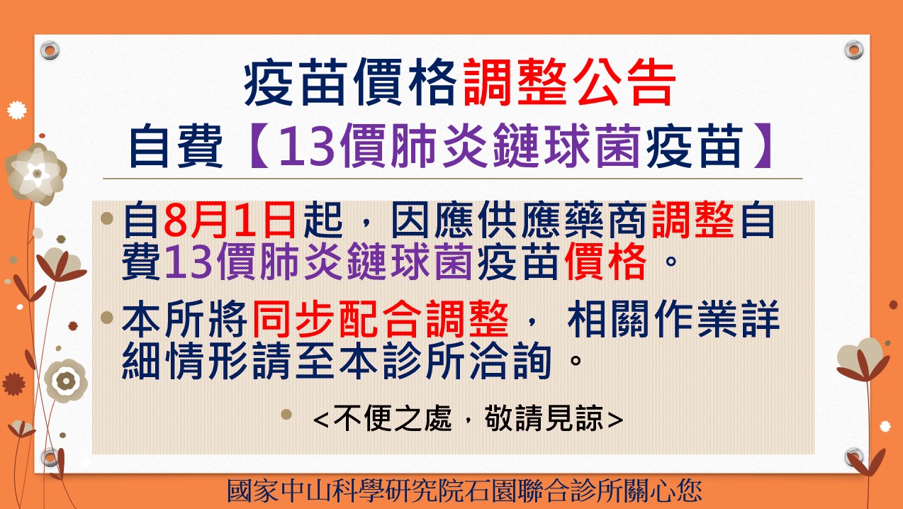 疫苗價格調整公告