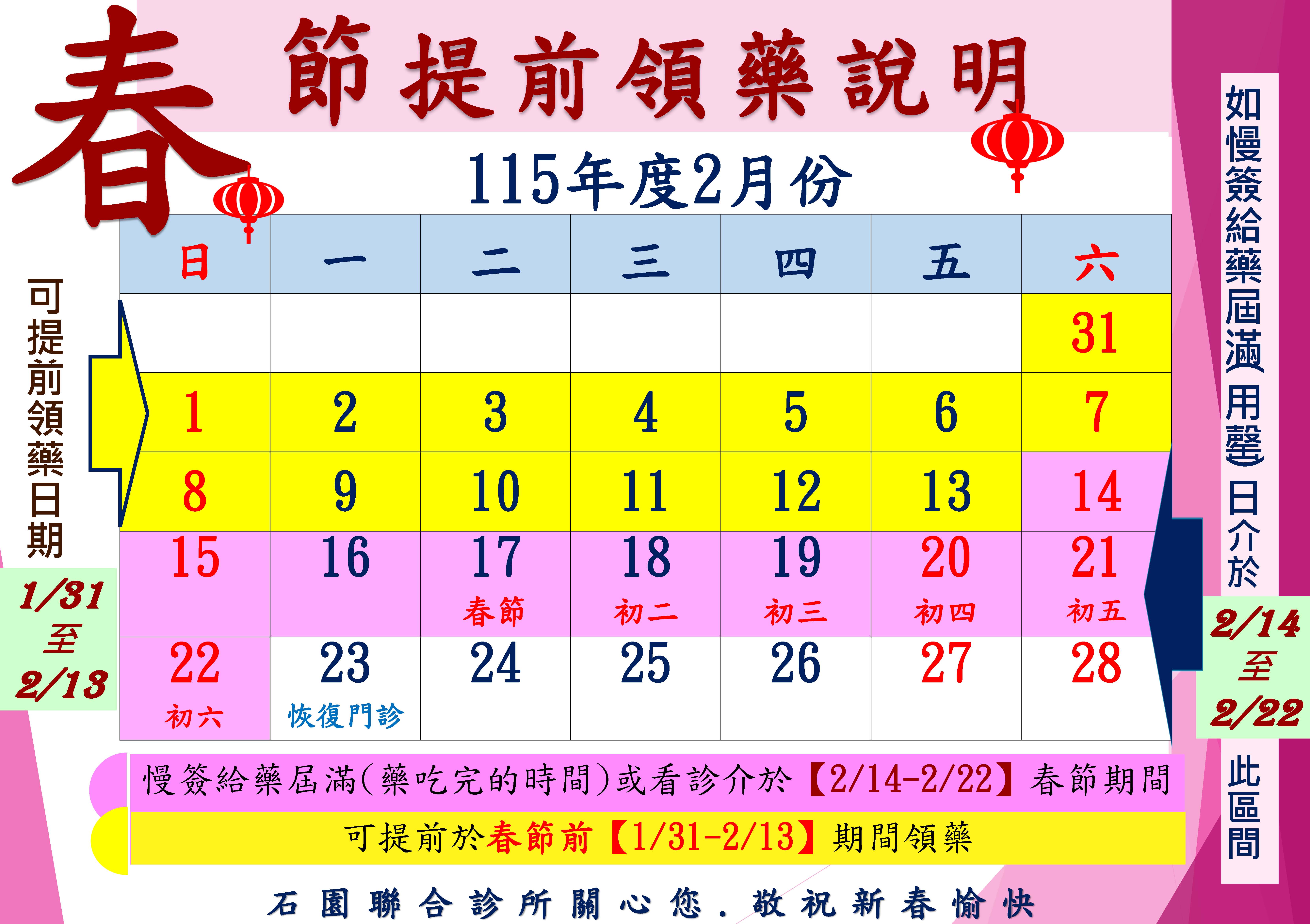 115年度春節提前領藥