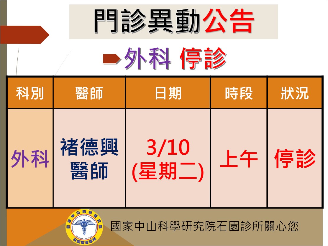 外科停診公告