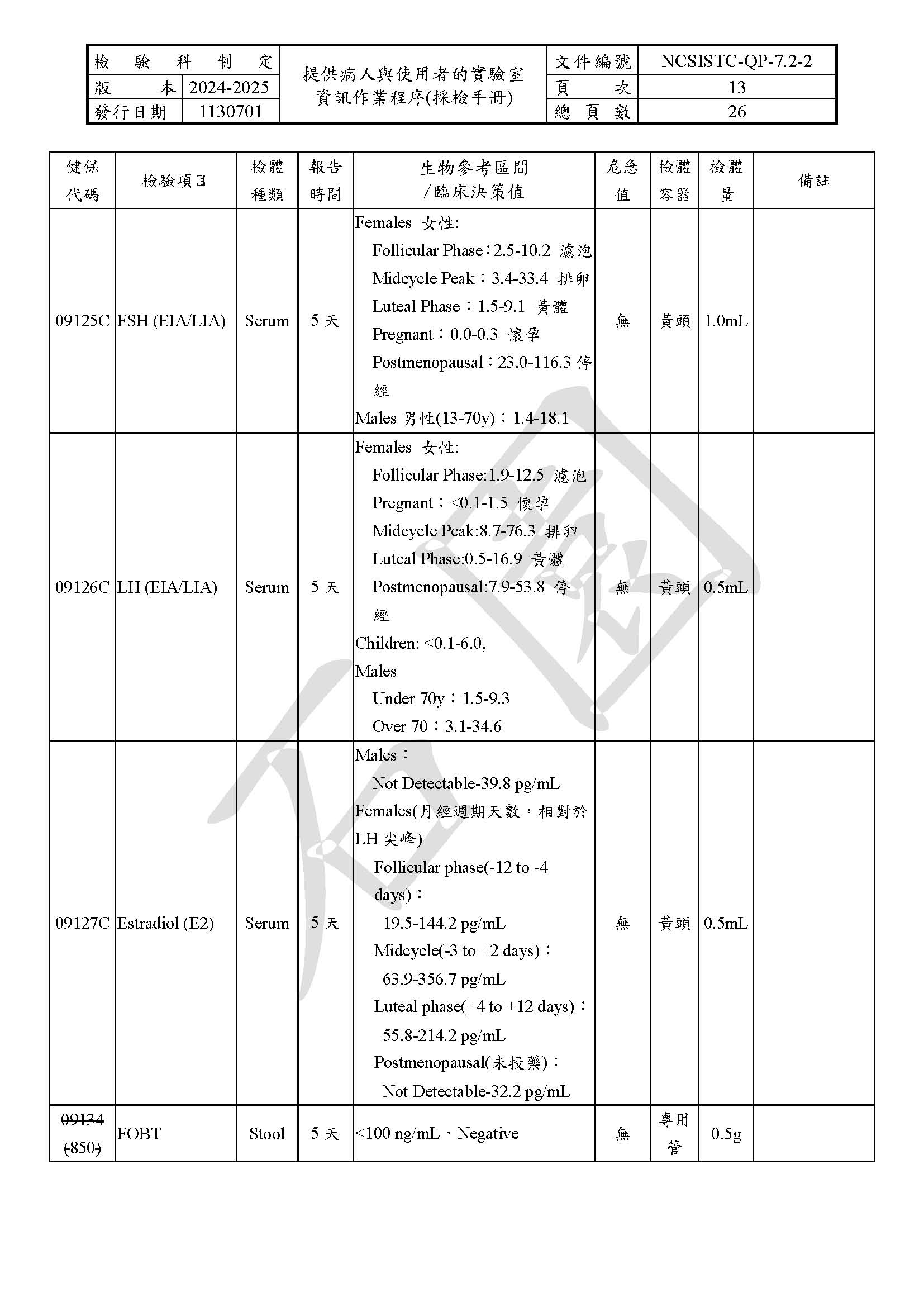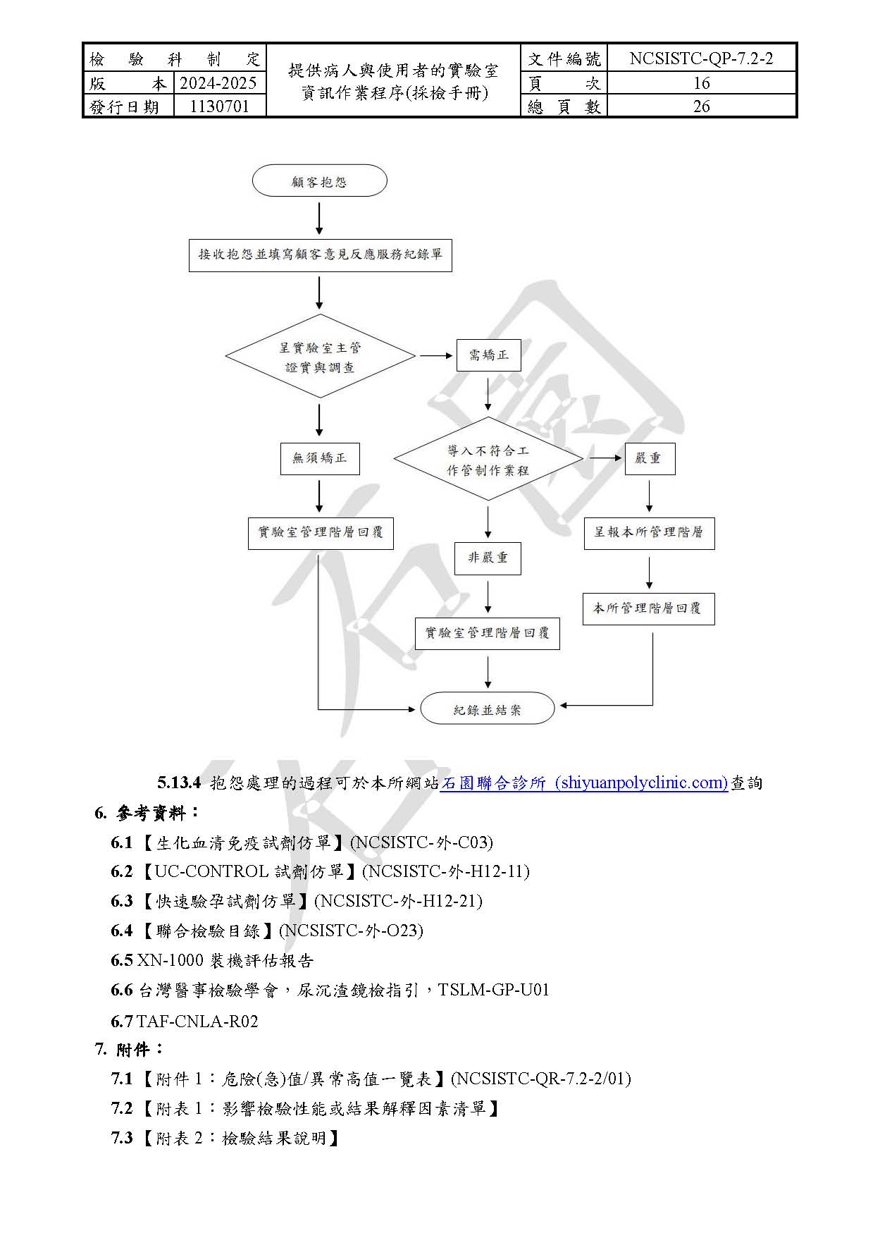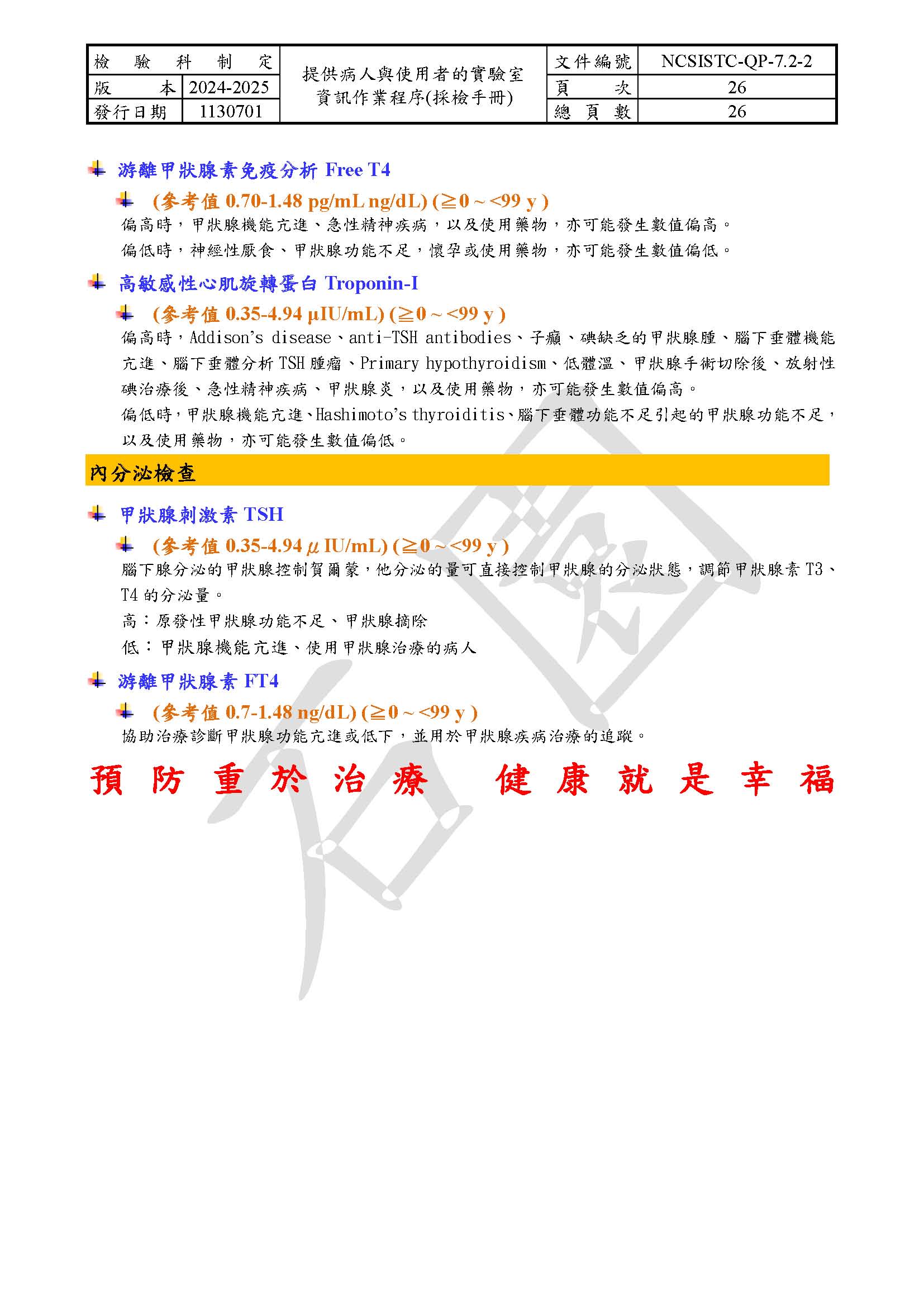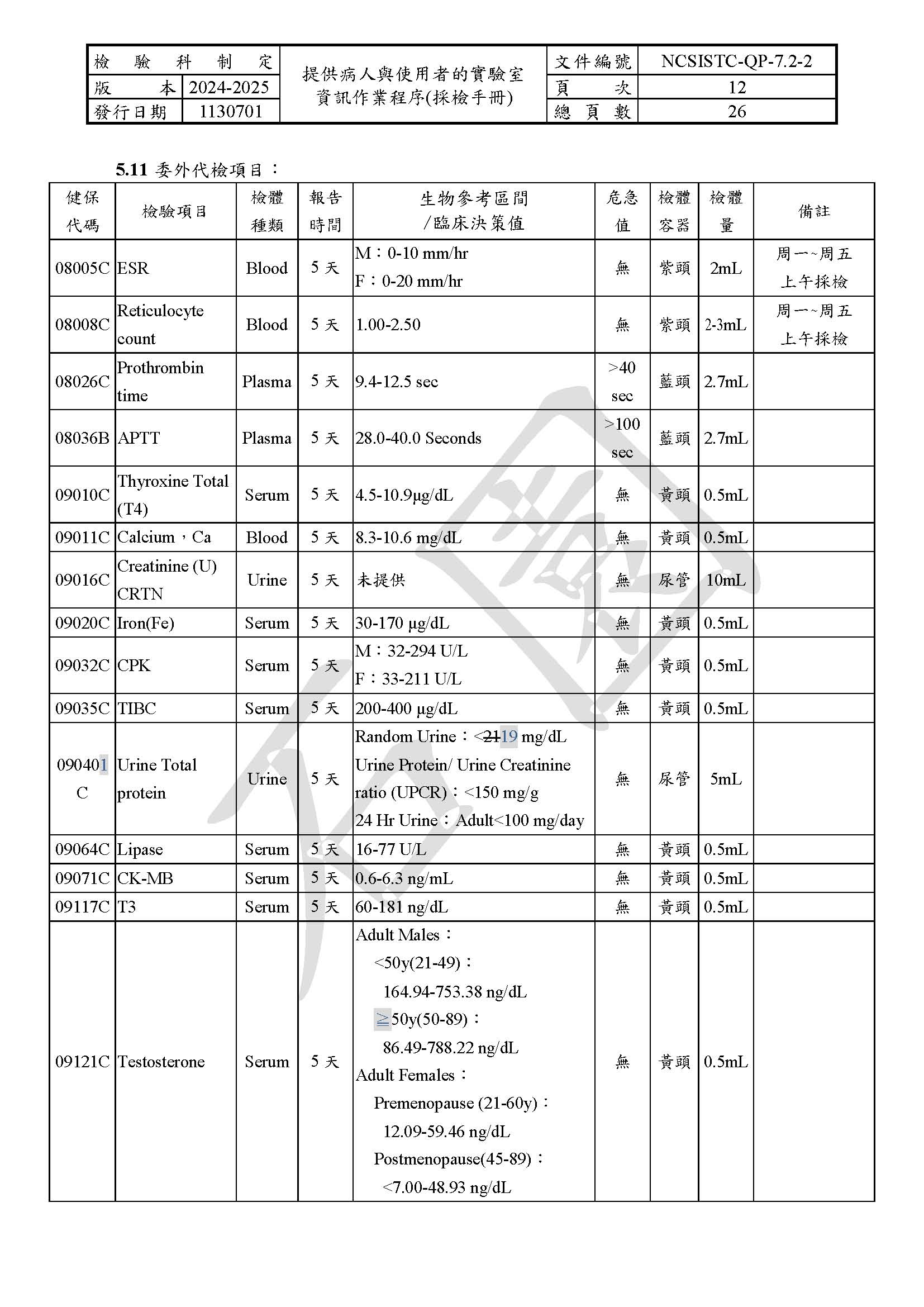 提供病人與使用者的實驗室資訊作業程序(採檢手冊)
