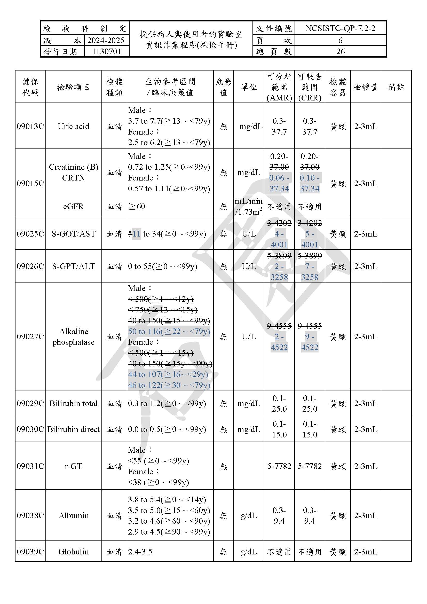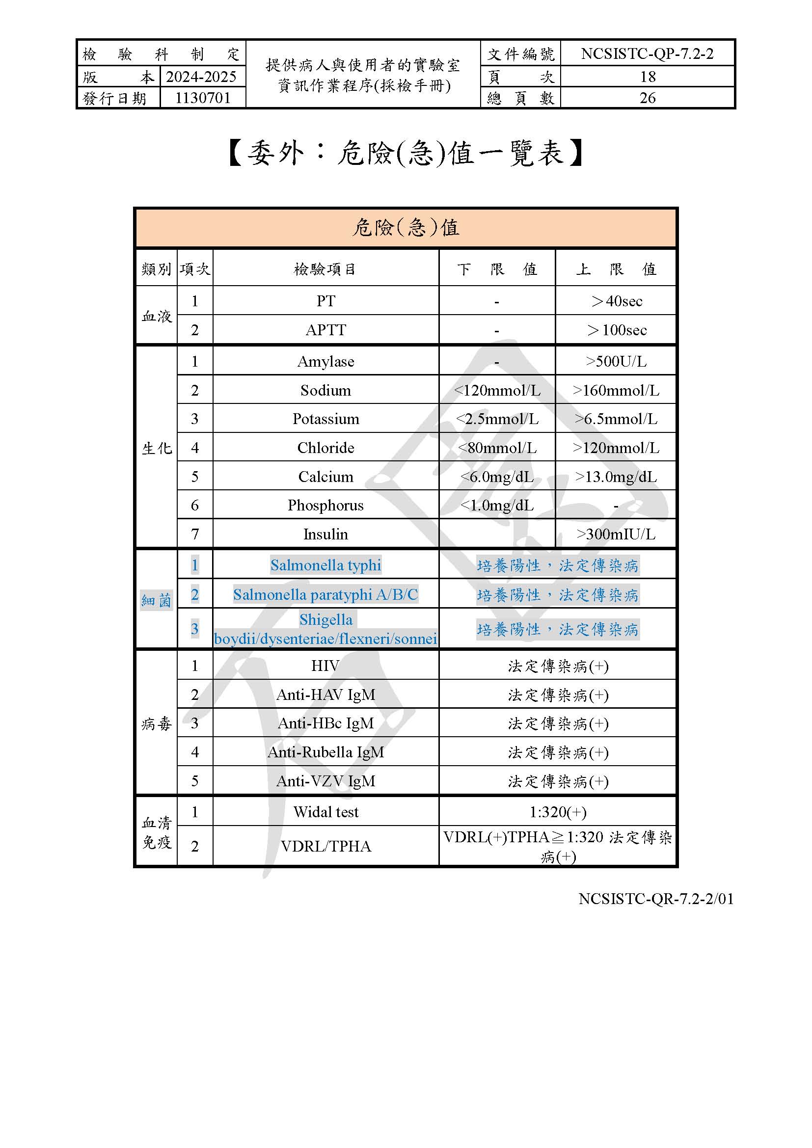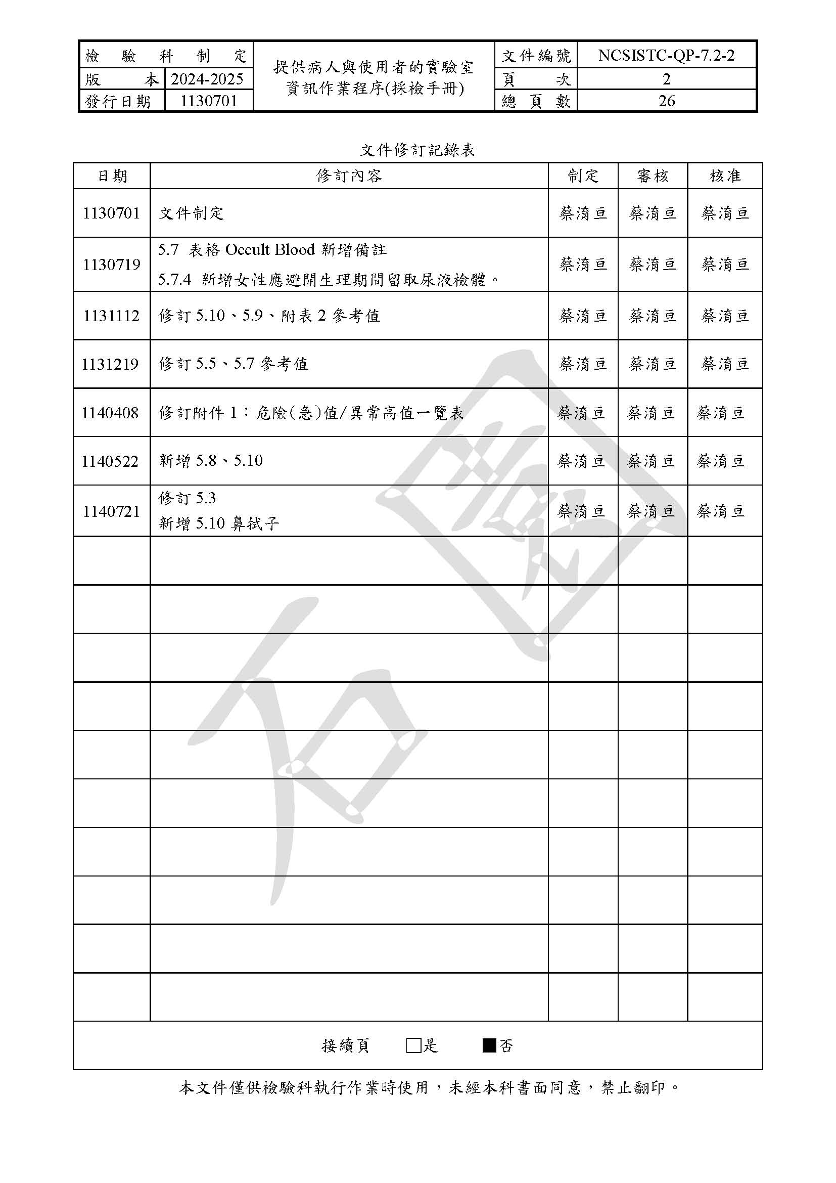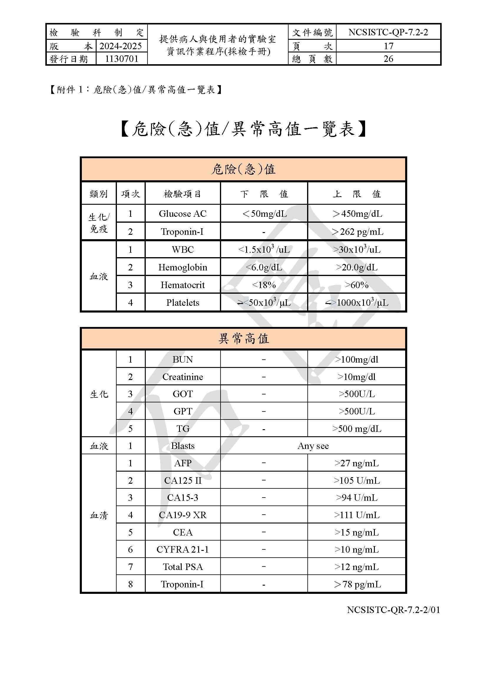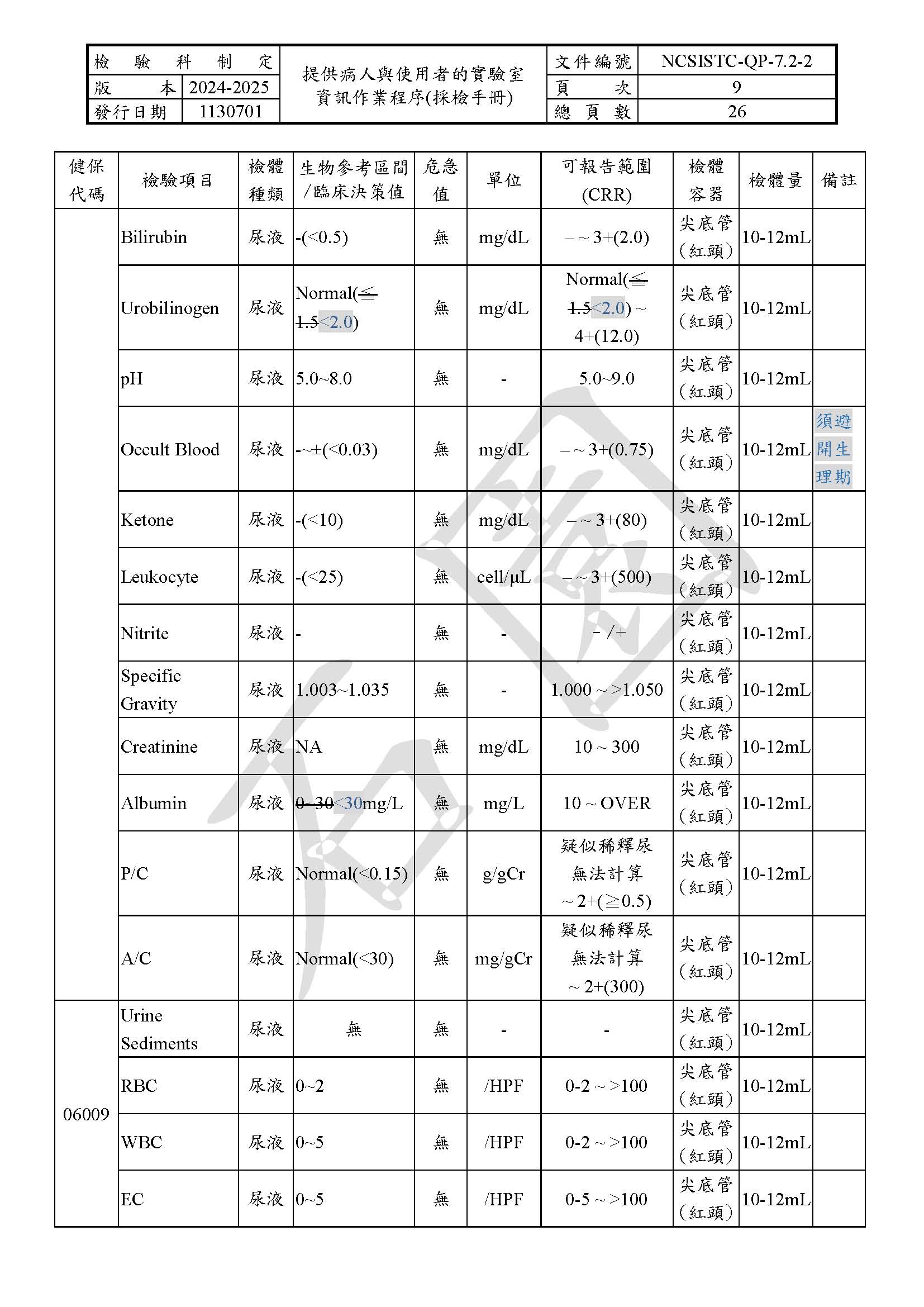 提供病人與使用者的實驗室資訊作業程序(採檢手冊)