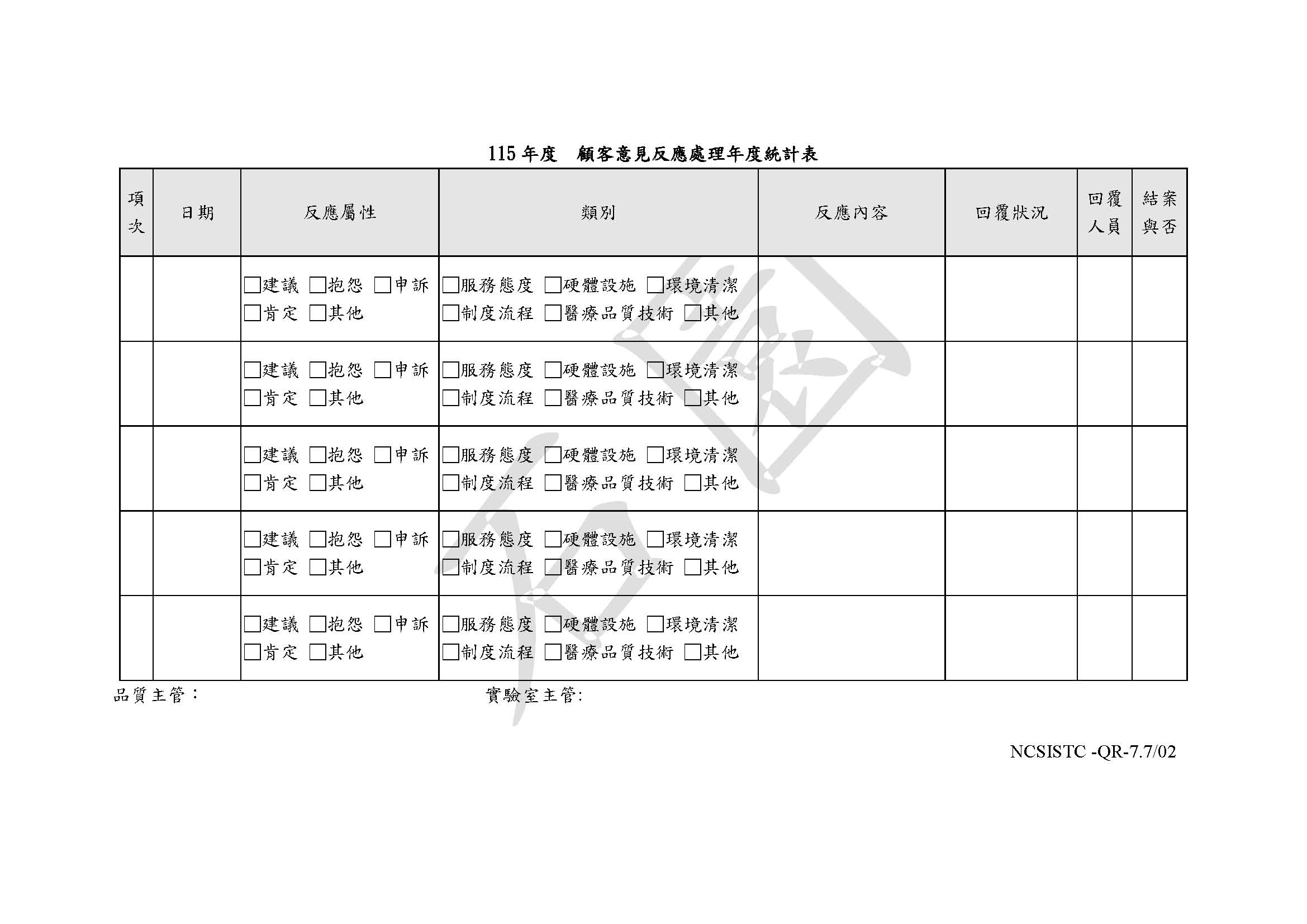 顧客意見反應處理年度統計表